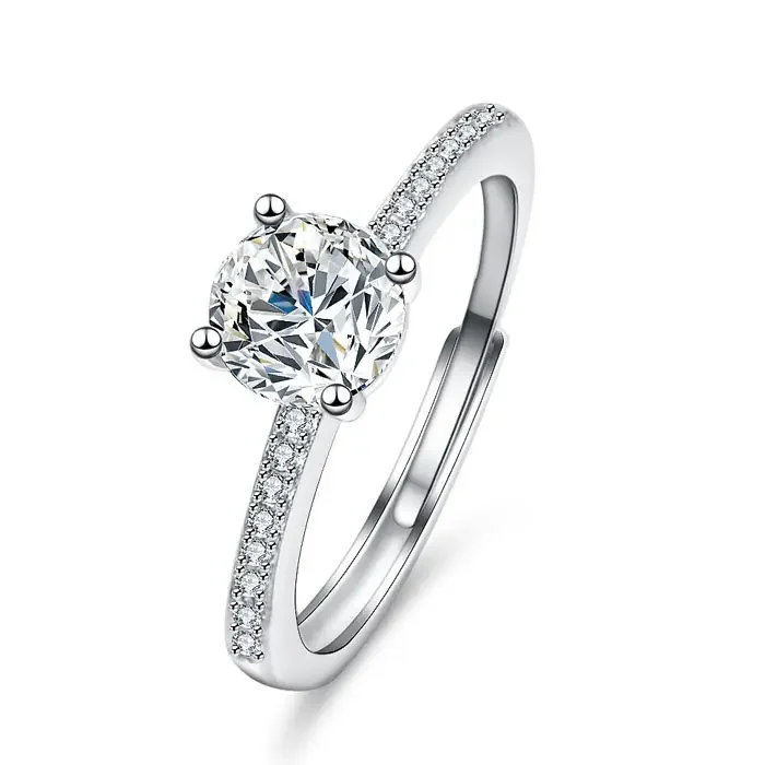 Anillo en Plata Ley 925 con circonita cúbica y moissanita de 1 kilate Certificado.