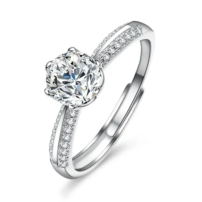Anillo en Plata Ley 925 con circonita cúbica y moissanita de 1 kilate Certificado.