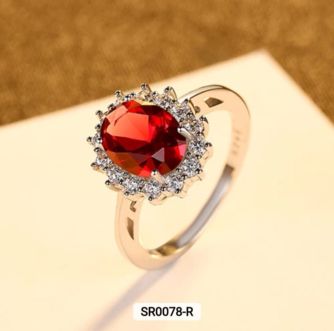 Anillo en Plata Ley 925 con circonita cúbica e incrustaciones de Zafiro-Rojo