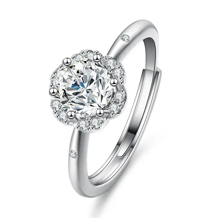 Anillo en Plata Ley 925 con circonita cúbica y moissanita de 1 kilate Certificado.