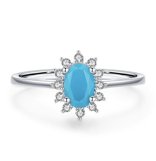 Anillo en Plata Ley 925 con turquesa y circonita cúbica.