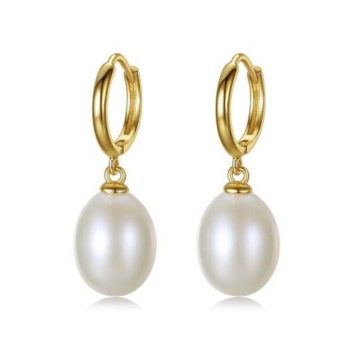 | Aretes en Plata Ley 925 chapado en Oro de 18k con perlas naturales. |