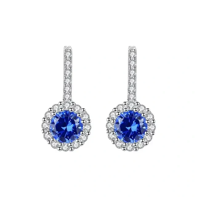 | Aretes en Plata Ley 925 con circonita cúbica e incrustaciones de piedra Preciosa Azul |
