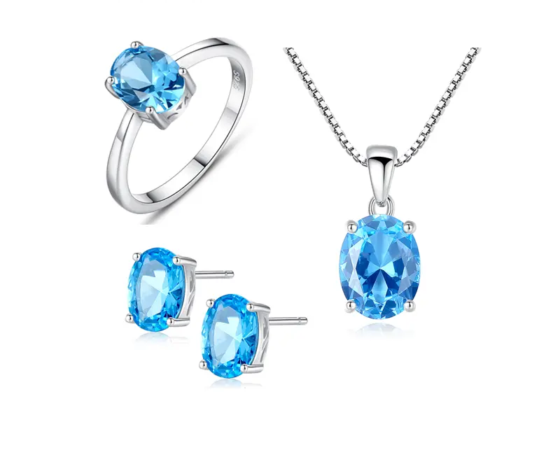 Conjunto en Plata Ley 925 con incrustaciones de gema aguamarina