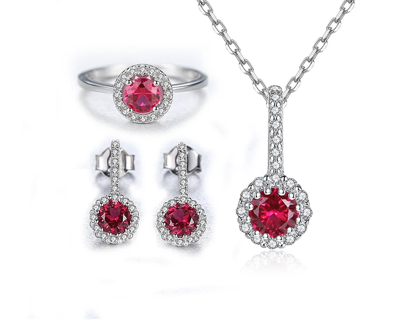Conjunto en Plata Ley 925 con incrustaciones de Piedra Rubí.