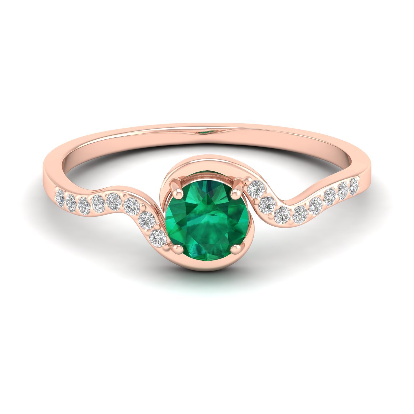 Anillo en Oro Rosa  de 18k Macizo  con Esmeralda Natural y  Diamante   Moissanita de 1 kilate certificado  de laboratorio.