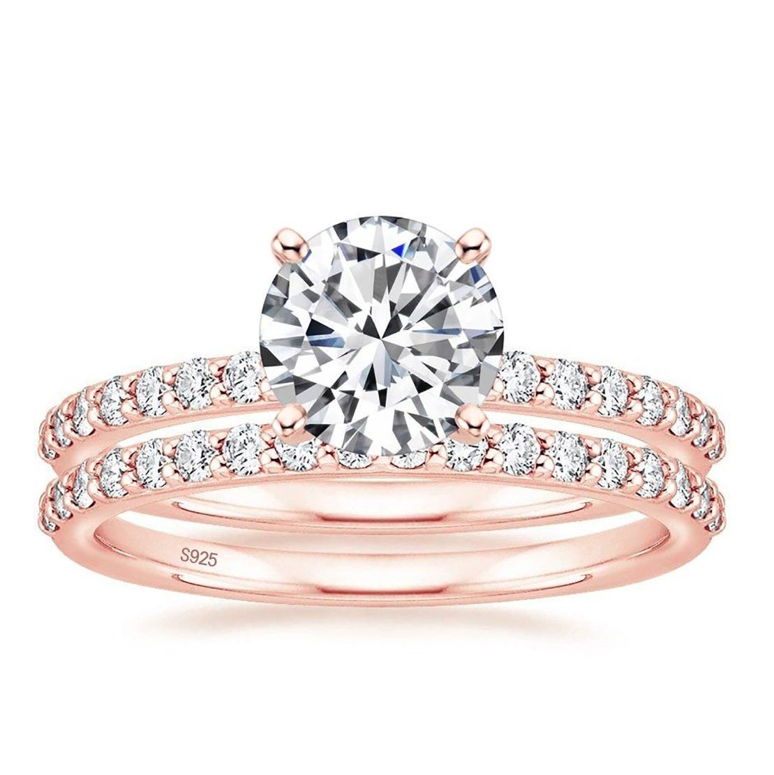 Set de anillos  en Plata Ley 925 Chapado en Oro  Rosa  con  Circonita cúbica y Moissanita de 1 kilate  Certificado