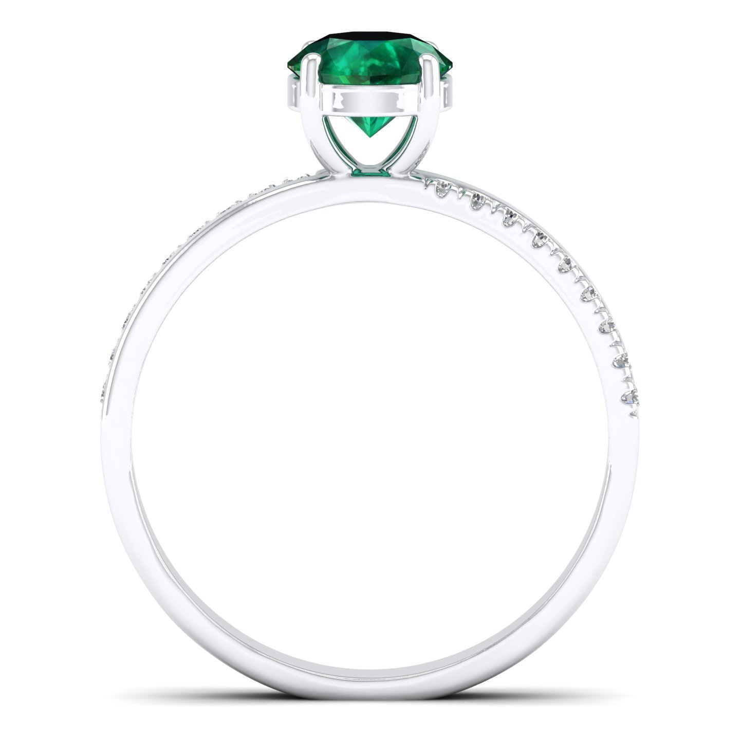 Anillo en Oro Blanco de 18k Macizo con Esmeralda Natural y Diamante Moissanita de 1 kilate certificado de laboratorio.
