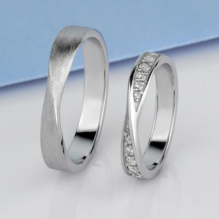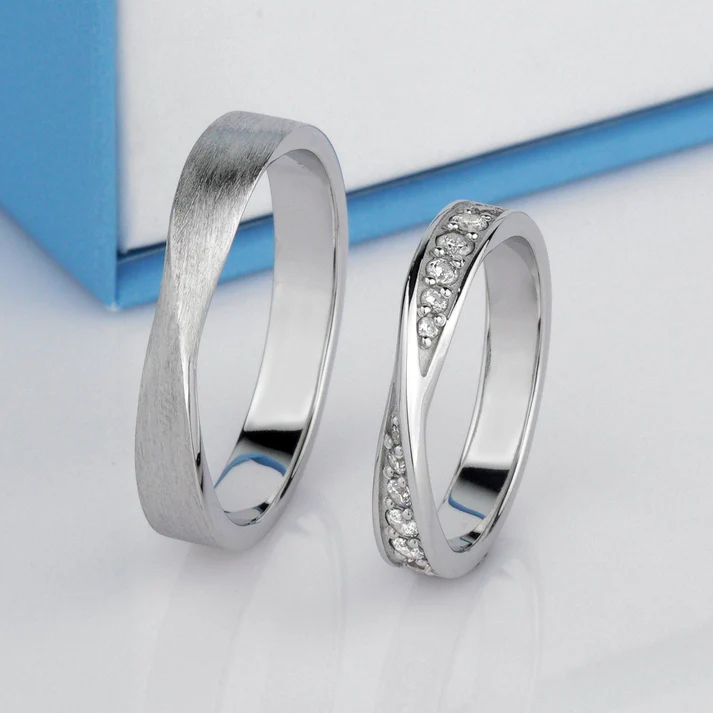 Argollas en Oro Blanco de 18k Macizo con Moissanita de 1 kilate certificado.