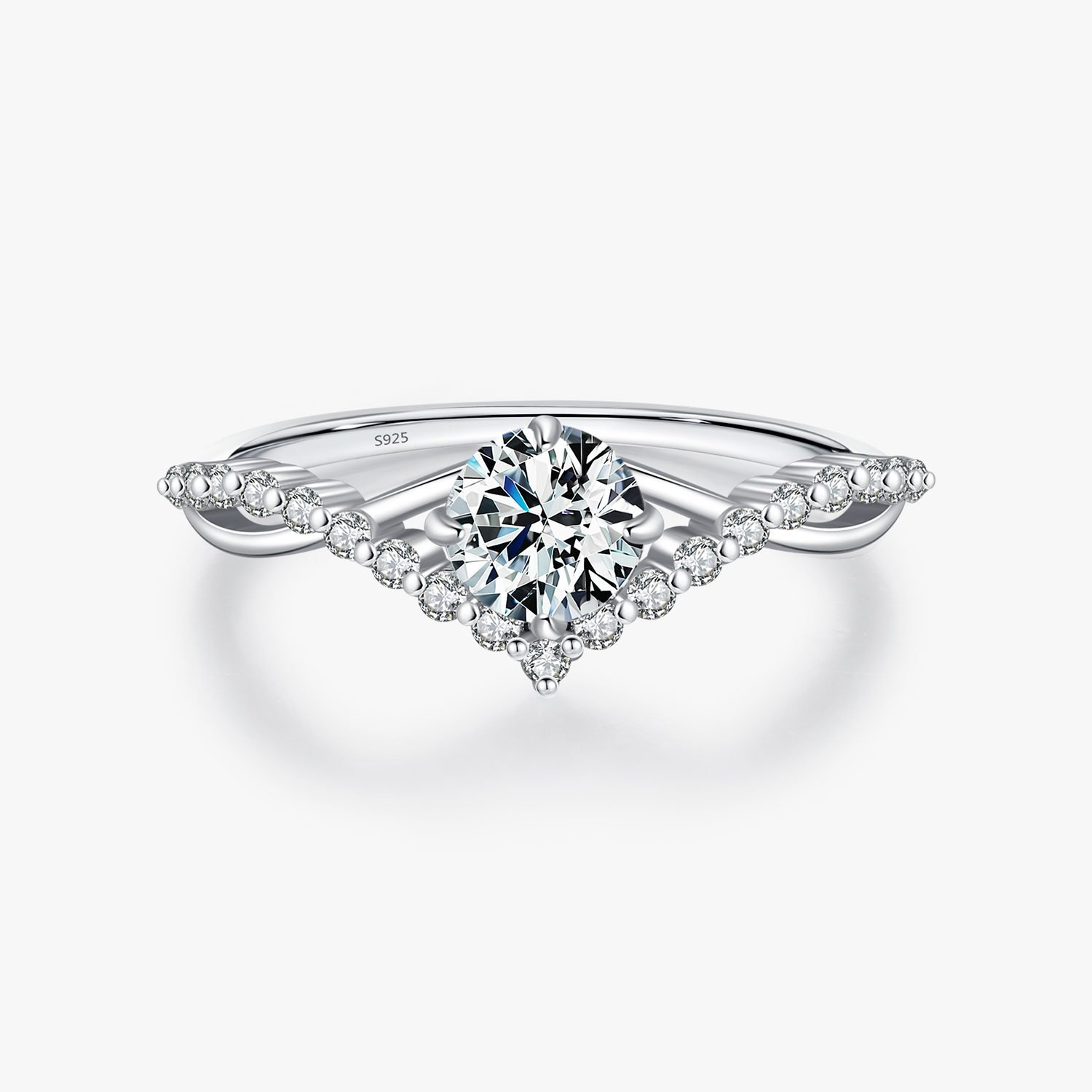 Anillo en Plata Ley 925 con circonita cúbica y Moissanita de 1 kilate Certificado.
