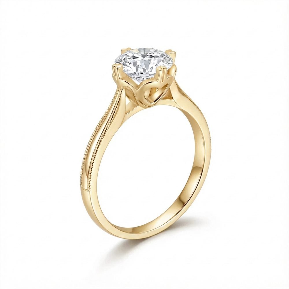 Anillo en Oro Amarillo  de 18k Macizo  con   Moissanita de 1 kilate certificado.
