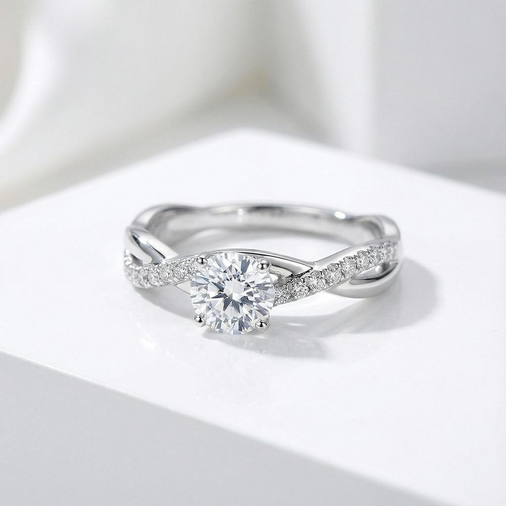 Anillo en Oro  Blanco de 18k Macizo  con   Moissanita de 1 kilate certificado.