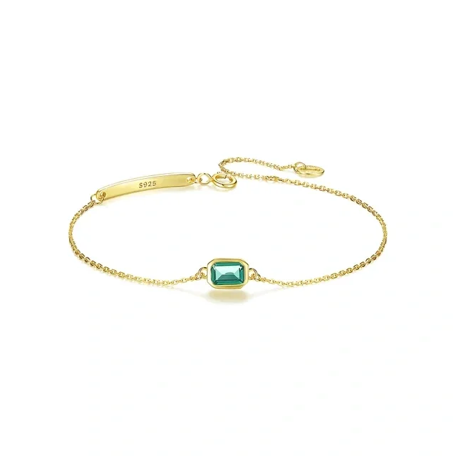 | Pulsera en Plata Ley 925 chapado en Oro de 18k con circonita cúbica – verde esmeralda |