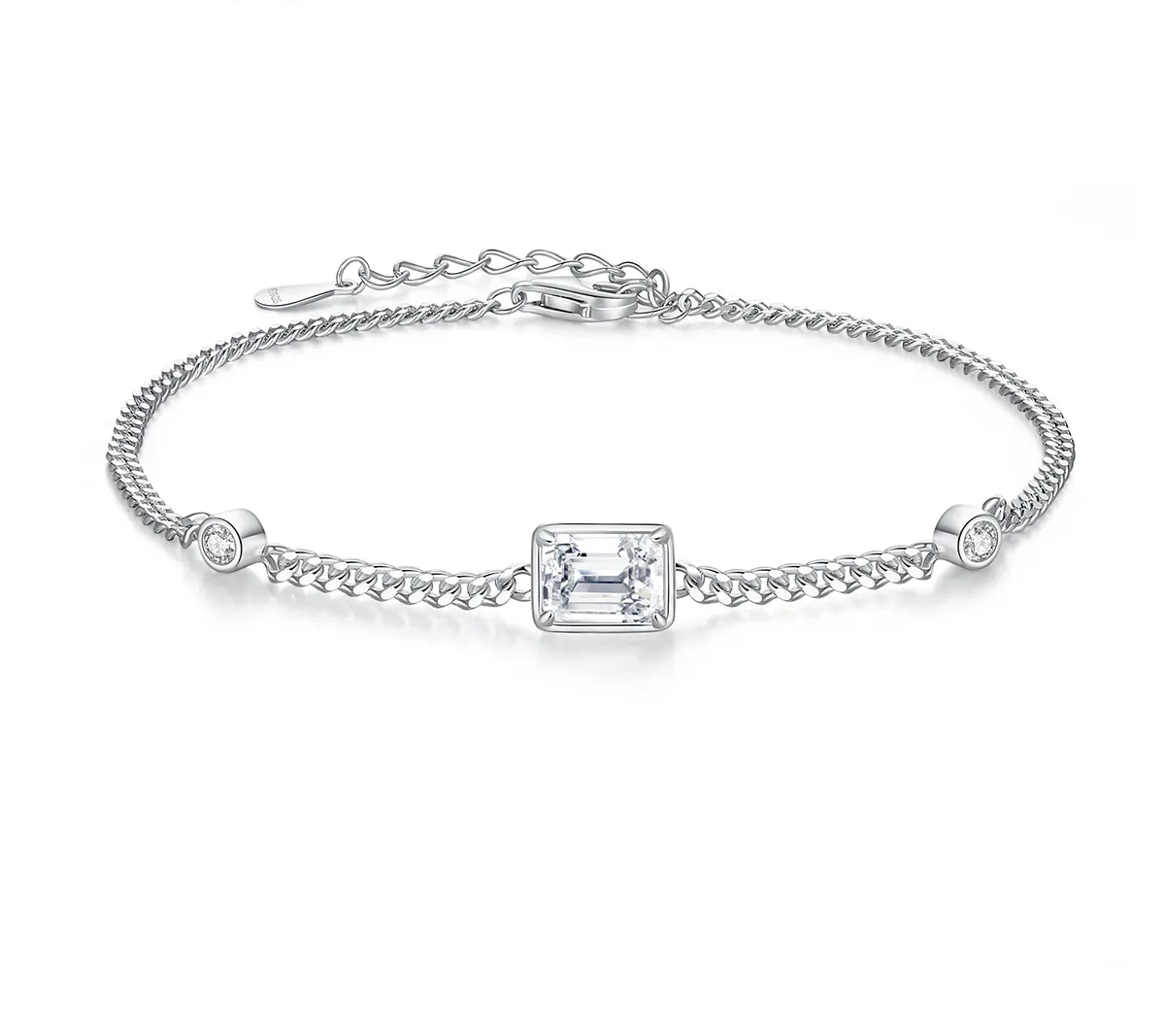Pulsera en Plata Ley 925 con circonita cúbica y moissanita de 1 kilate Certificado.